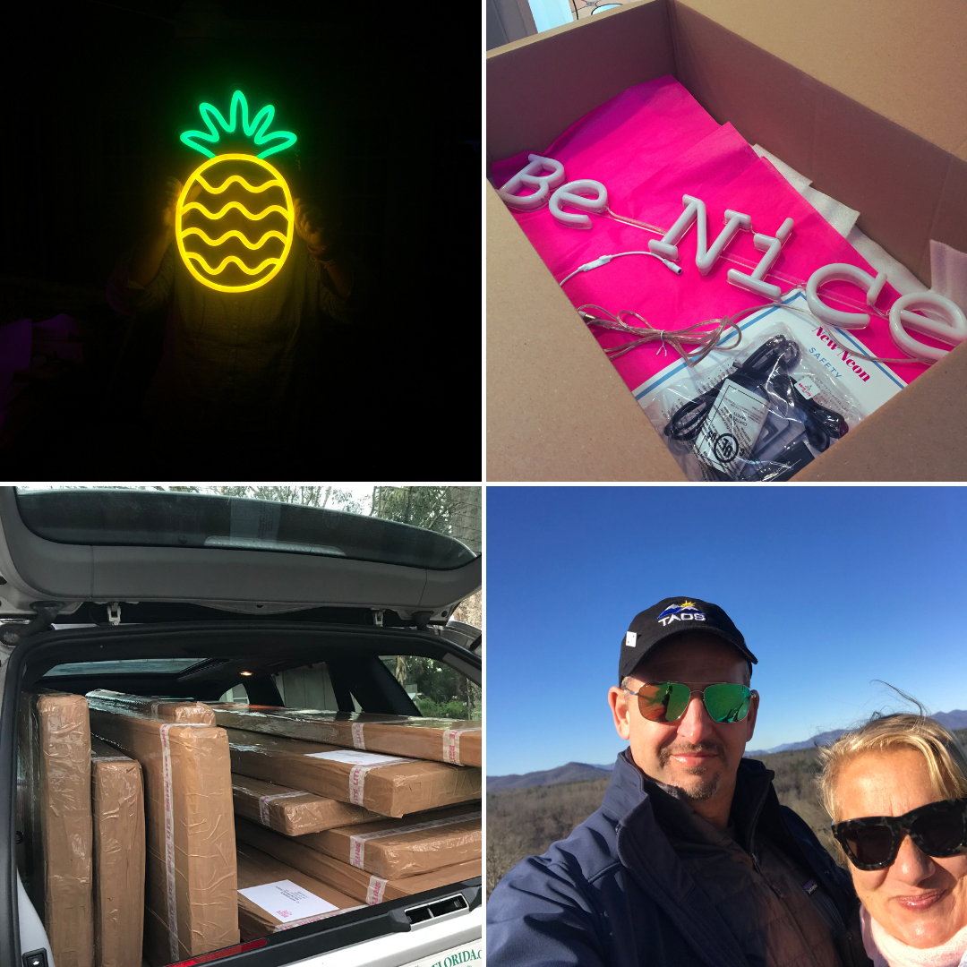 In 2016, while producing events for some of the biggest brands, founders Lisa and Tom discovered New Neon® as an affordable medium for customers to tell their stories through thoughtful and unique designs. This brite idea started in our garage and since then we've made thousands of signs - for corporations, weddings, start-ups, architects and just about anything you can imagine. It's been a wild ride and we still love sharing a bit of neon joy every day.