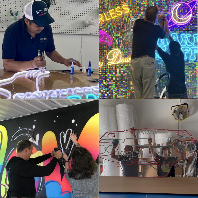 Behind the scenes, we've got a creative crew that works hard to bring you the very best. From brainstorming wild ideas to making sure every sign is shining just right, we're fueled by passion and powered by teamwork.